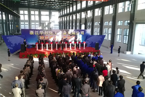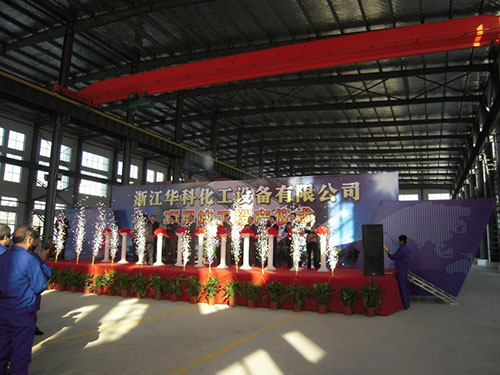 ? 2013年11月18日,由我公司全額投資的浙江華科化工設備有限公司舉行了竣工投產儀式。新廠區位于杭州西北部的安吉天子湖工業園,占地30畝,建筑面積1萬3千平方米。原蕭山寧圍鎮部隊農場內的工廠已整體搬遷至新廠區。我公司熱忱歡迎各界朋友和新老客戶蒞臨參觀指導。